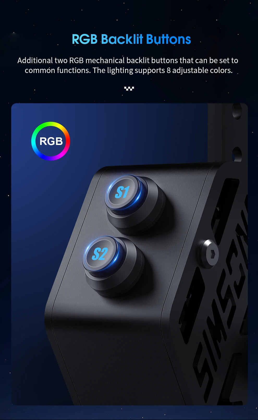 Dynamic RGB Backlit Mechanical Buttons - Elevate your gaming setup with two RGB backlit mechanical buttons.