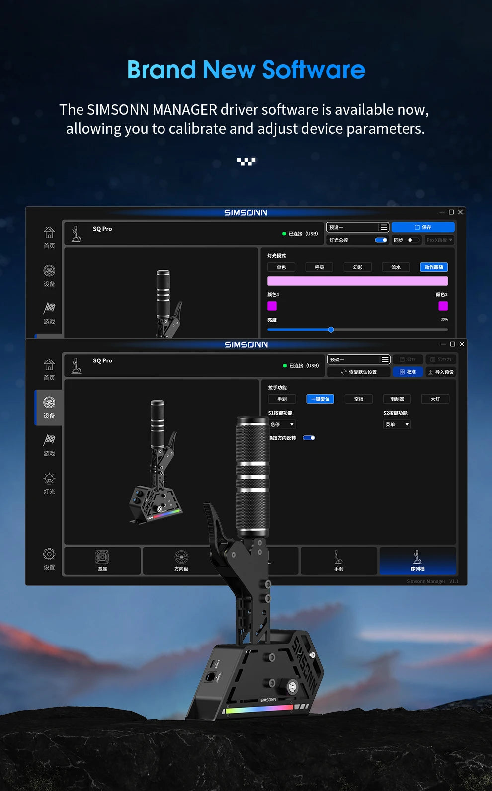 ARGB Lighting Effects - The RGB lighting supports dynamic display of shifter pressure. Customize LED lighting effects via SIMSONN Manager software, with support for synchronization across SIMSONN devices for an immersive racing experience.